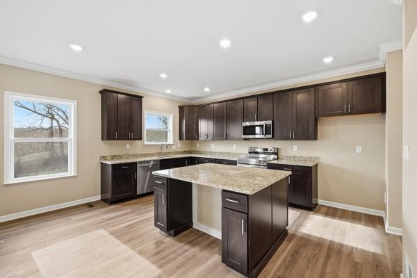 Completed Somerset model, 4 bedroom, 3.5 baths, finished walk-out basement, Upgraded kitchen cabinets with Island, Granite countertops, Stainless steel appliances, Fireplace in family room, LED lighting in kitchen, family room, breakfast nook, den/office and Owner's suite. LVP flooring on first level, Deluxe silver bath in Owner's suite, Garage Door Opener and so much more.